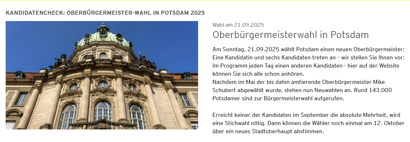 Antenne Brandenburg möchte über die OB-Wahl in Potsdam und eine wahrscheinliche Stichwahl berichten.